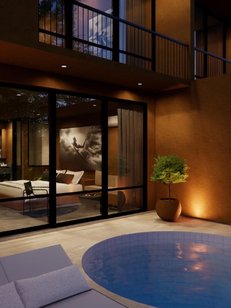 Inspired by the natural elements around us, Stone, Water, and Trees form the core of Loji Nyanyi. Stone, inspired by the local Jineng Stone, symbolizing strength and heritage, Water, represents the calming presence of the river and nearby beach and Trees, the majestic trees that create a peaceful, natural environment. Together, these elements create a sanctuary for a balanced lifestyle and meaningful experience.