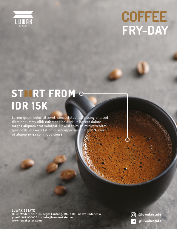 Located in a beautiful and natural environment with a building design inspired by traditional Balinese village houses and in the village of Tegallantang Ubud which is still very thick with its cultural customs, an area that extends from the north to the south, the building concept area of the Luwak Estate itself also elongated, where the restaurant and public area are in the middle, implemented as a bale banjar, villa buildings are on the right and left which extend to the sides, which are interpreted as residents’ houses in the banjar of Tegallantang. In the a proximity of Ubud Center and walking distance to the Royal Palace.