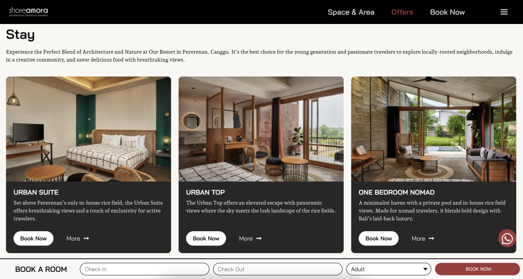 Designed to encompass its own in-house rice field, Shore Amora Canggu covers a prime piece of landscape that is within easy walking distance to Prerenan Beach. Accommodation extends to a collection of contemporary rooms and villas supported by high-end facilities. It is a place to unwind and recharge without having to disconnect from the technology that drives today’s modern world.